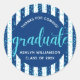 Navy Graduation Turquoise Glitter Confetti Script Classic Round Sticker