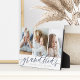 Create a sweet gift for a beloved grandma or grandpa with this beautiful photo collage plaque. "Grandkids make life grand" appears in navy blue and gray calligraphy lettering beneath 3 photos of their grandchildren.