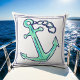 Navy Green Anchor Nautical Boat Coastal Throw Pillow