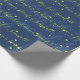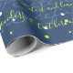 Stylish Navy Blue Green Minimalist Custom Script Text Snowfall Wrapping Paper