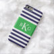 Navy Green Stripes Monogram Case-Mate iPhone Case