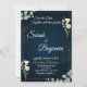 Designed with a deep navy background and soft botanical accents, this invitation offers a refined and timeless look. The delicate greenery and subtle floral details create a romantic yet modern aesthetic, perfect for stylish weddings.