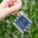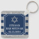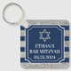 This navy blue, grey, and white striped Bar Mitzvah keychain is a perfect party favour for a classic Bar Mitzvah. This square Bar Mitzvah keychain favour has a navy blue and grey striped pattern behind a navy blue and white trimmed ticket-shaped text area that is personalized with the name and date of the Bar Mitzvah in white lettering below a grey Star of David at the top which can be removed if you want to use these for another type of event.