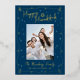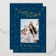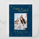 Navy Hanukkah Photo Hand Drawn Your Note Real Gold Foil Holiday Card