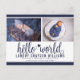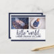 Navy Hello World Photo Birth Stat Announcement Postcard