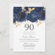 Navy Indigo Blue & Gold Floral 90th Birthday Party Invitation