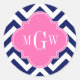 Navy Lg Chevron Hot Pink #2 Quatrefoil 3 Monogram Classic Round Sticker