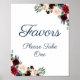 Use our rustic navy, marsala, and pink flower wedding favours sign to let your guests know to take a favour. The wording is completely customizable. Use Zazzle's "Personalize this template" tool to enter your own information. If you need to change the placement of the text boxes, font colour or size just click on the "Click to customize further" button to change those things. Be sure to check out our large selection of coordinating items by browsing the Rustic Navy and Marsala Floral Wedding collection!