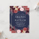 Navy Marsala Peony Engagement Party Invitations - features a navy blue background with various peonies, roses, and other floral elements in shades of Marsala, burgundy, blue pink, grey and more. See the matching collection on this page to complete the look for your event.