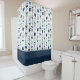 Navy, mint and grey fletching arrows, running vertically on shower curtain. Compliments many other items from Sugarpinedesign’s nursery collection.