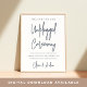 A simple and modern sign to display at the entrance to your wedding ceremony, this chic typography based design asks guests to participate in your "unplugged ceremony" by switching off their devices for the duration. Personalize with four lines of custom text, including your names at the bottom in handwritten script lettering. Colorway: Navy, a classic dark blue.