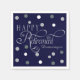 Navy Modern Retirement Party, Custom Napkins. Modern navy design with white, silver and silver glitter polka dots.