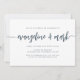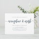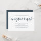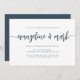Simple and elegant engagement party invitation for modern couples features your names in handwritten calligraphy script typography. Personalize with your engagement party details beneath. A modern design in chic dusty navy blue and white for elegant engagement celebrations.