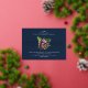 Navy Modern Tropical Bouquet Wedding foil invitations by Eugene Designs.