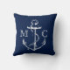 Navy Monogram Nautical White Sketch Anchor | Throw Pillow