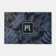Bring a bit of elegant tropical hospitality into your home with this chic, modern doormat with a handwritten monogram initial over a graphic palm leaf pattern of steel navy blue gradations overlaying a black background. Makes a great gift for a special friend, or even yourself!