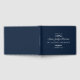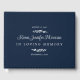 Navy blue memorial service guest book with white text and greenery. Add your loved one's name in a gorgeous script.