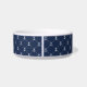 Pamper your seafaring pooch with our personalized dog bowl, featuring a pattern of tiny white nautical anchors on classic navy blue, with your pet's name on the front.