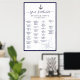 NAVY NAUTICAL SEATING CHART, ALPHABETICAL POSTER