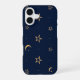 Navy Night Sky with Stars and Moon Pattern iPhone 16 Case