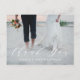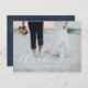 Navy blue painted + script hand lettering photo wedding thank you postcard. Part of a wedding suite.