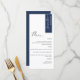Why spend in place cards and menu cards when you can have an elegant All-in-one elegant Menu personalized with each guest name! Contemporary, simple and elegant design with beautiful modern hand written calligraphy. Stripe on the top right corner in navy blue tone with guest name in white. Back in same navy blue as stripe. Ability to change both stripe colour or back by selecting "customize further". NOTE: please an individual order for each menu by adding guest name into menu, add menu into shopping cart; then come back to menu, add second guest name, add menu to shopping cart...continue with this process with all guest names on your list. For short first guest names, add with your keyboard spacebar a few empty "spaces" before the name, to centre it better. Design available in a variety of colour choices. Coordinating seating plan cards with guest names available.
