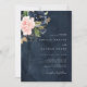 Navy Pink Elegant Watercolor Florals Wedding Invitation