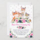 Navy Pink Floral Woodland Forest Animals Birthday Invitation