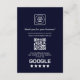 Encourage customers to share feedback with this navy Google Review QR design! A quick scan takes clients straight to your business review page, helping you build trust and boost your online reputation. Perfect for salons, cafés, shops, and professional services.