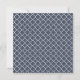 A chic navy blue bridal shower invitation with a classic script font and pretty quatrefoil pattern.