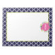 Our Navy Quatrefoil Floral Large Personalized Notepad is the perfect personalized gift or perfect for your own lists, notes and more. This design features a navy blue background with white quatrefoil pattern, a pink circle with room for a name, monogram or other wording, and floral border accents.