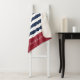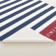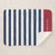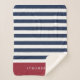 Nautical chic sherpa blanket features wide navy blue and white stripes. Personalize with a name or family name along the bottom on a band of deep red.