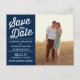 Navy Retro Script Photo Save the Date Postcard