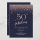 Navy Rose Gold 50th Birthday Invitation