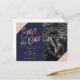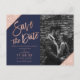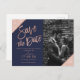 Rose Gold typography on customizable navy blue rose gold glitter colour block, and faux rose gold geometric stripes chic save the date wedding , perfect for elegant, stylish wedding,