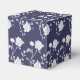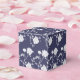 Personalize a unique wedding favour box for guests with this unique Navy Rose Wedding Favour Box. Favour box design features white roses and matching tiled background. Personalize with the groom and bride's names along with the wedding date. Additional wedding stationery available with this design as well.