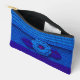Navy and royal blue shades floral image printed on accessory pouch is from a photo of an original crocheted creation designed handmade and Copyright © by published designer Delores Chamblin. The picture of the unique handcrafted bag with fancy stitches, flower, leaves and button is reproduced on the travel case.