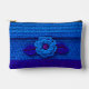 Navy Royal Deep Blue Flower Artisan Crochet Print Accessory Pouch