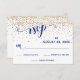 Navy RSVP Calligraphy with Hearts, Gold Confetti,