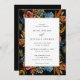 Navy & Rust Boho Floral, Black Wedding Invitation