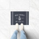 Welcome guests to your fishing boat, sailboat, yacht, or houseboat with this charming nautical doormat. Personalized design features your boat name, ship's registry, and year established in white lettering with an anchor illustration. Rope stripe detailing on a rich navy blue background completes the design.
