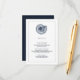 Classic Navy and white information card with solarium sea shell at centre.