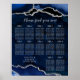Navy Silver Agate Wedding Seating Chart 12 Table