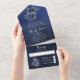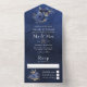 Navy, Silver and Gold Floral Wedding All In One In Invitation