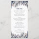 Watercolor winter botanicals, pine branches, and berries in navy, blue-grey, and rusty brown make these menus perfect for a late fall or winter wedding. The back of the card is navy and the text is navy and medium grey.