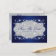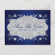 Navy, Silver Floral, Hearts Save The Date Postcard
