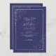 This elegant and modern graduation party invitation is ideal for a classy and formal event. It features a faux printed sparkly silver glitter confetti sprinkled on the corners over a thin silver rectangle border with a navy blue background. It's chic, luxurious, pretty, simple, and trendy; the perfect design for your special day.