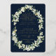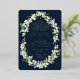 A dark navy reception-only wedding invitation, featuring hand painted snowberries and stems of eucalyptus arranged into a beautiful botanical frame. The text and scattered dots on the front of the card are foil pressed. All text is fully editable. Please view this Collection in my store for invitations with alternative wording options, different colours and for coordinating items.
