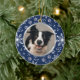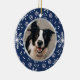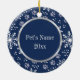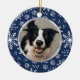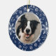 Navy Snowflake Paw Pattern Pet Photo Ceramic Ornament