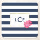These paper coasters feature a bold navy blue and white stripe background, faux gold border, and a pretty pink peony in soft watercolors. Coordinates with our Navy Stripe & Pink Peony office supplies, paper products, and accessories. Customize with a monogram, name or text of your choice!